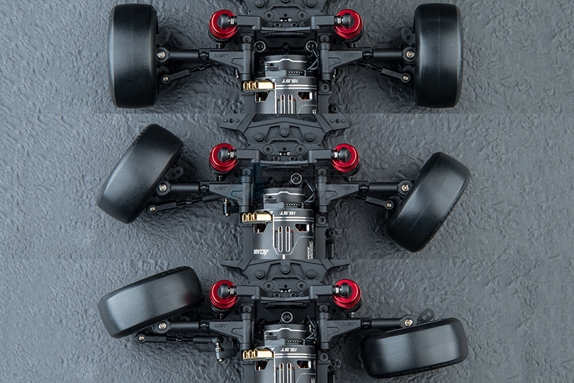 - The final ratio is changeable by installing a higher or lower tail gear. This allows for quick adjustments according to the track environment or the accelerator response required by the front/rear chasing vehicle positions.
