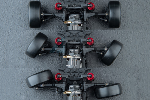 - Newly designed aluminum steering system with improved Ackermann settings for faster response and greater drift angles.
