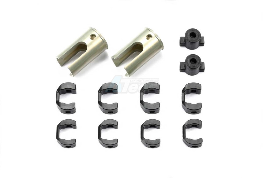 • Tamiya Direct Cups are used on the TRF419 series of super high-performance race cars. They are part of the Direct Coupling (Spool) that is used in front of the car as part of the 4WD drive line. These option cups are made of aluminum compared to the standard steel versions found in the standard TRF419 kits. They will provide a more linear response and less rotating mass compared to the steel cups.