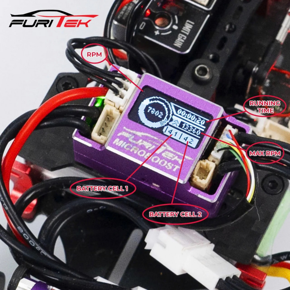 - Factory description: Furitek Furitek Microboost 2s Lipo 25a/50a Brushless Sensored/Sensorless Esc For 1/24 1/28 Drift/race w/LCD Display - Purple