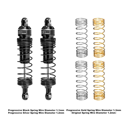 The black spring installed on the shock absorber has a wire diameter of 1.1mm. GPM also ships two additional springs, a silver spring with a wire diameter of 1.2mm and a gold spring with a wire diameter of 1.3mm, which can be replaced according to your own needs.