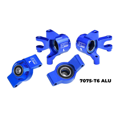 7075 Alloy Front Steering Blocks & Rear Hub Stub Axle Carriers With Oversize Bearing Blue by GPM Racing