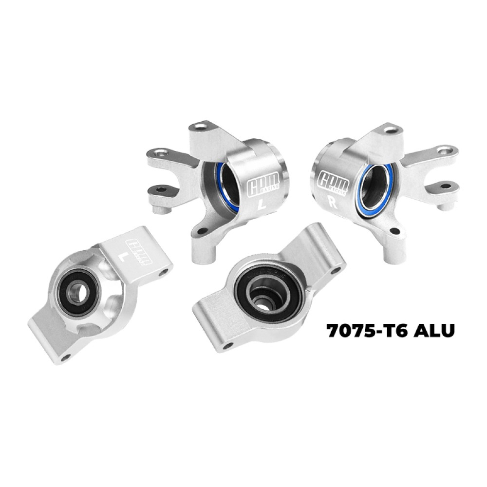7075 Alloy Front Steering Blocks & Rear Hub Stub Axle Carriers With Oversize Bearing Silver by GPM Racing