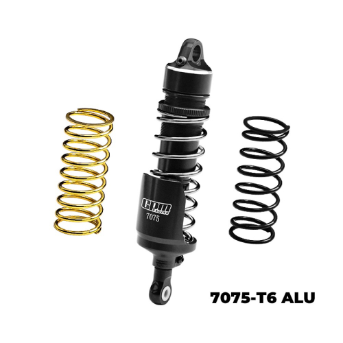 The shock absorber is equipped with a gunmetal colored spring with 9 coils, an inner diameter of 19.9mm, and a wire diameter of 2.3mm.