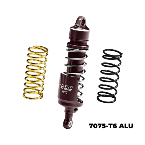 The shock absorber is equipped with a gunmetal colored spring with 9 coils, an inner diameter of 19.9mm, and a wire diameter of 2.3mm.