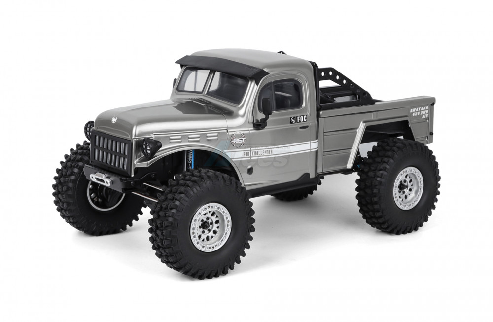 - Since the RGT Challenger was launched at the end of 2022, it has been recognized by the market for its powerful configuration and superior performance. To further improve and enhance the performance of Challenger, RGT will launch an upgraded version of Challenger to match the market demand. Model number: EX86170PRO. The upgraded Challenger is powered by Hobbywing brushless FOC system (WP Fusion BLSYS for Crawler-540 SPEC-RTR), driven by magnetic orientation control, with strong low-speed torque and excellent linearity, and the motor runs smoothly and quietly with excellent waterproof and dustproof function, easily cope with all climates and terrains. BEC output of 7.4V/3A brings greater torque output for high-voltage servo. The upgraded version aims to make the whole vehicle more light, adopting a nylon portal axle and spiral main gear. PRO version retains the two-speed transmission, DIG transmission, front drive and four-wheel drive modes, and rear winch, and adds the electric disconnection of the rear anti-roll bar. The five servos are all equipped with metal gear, and the steering servo changes into a 35KG steel gear CNC metal shell servo. The brass front steering mount cover is assembled within the factory, increases unsprung weight, and improves the ultimate climbing performance. Updating with a larger diameter metal shock absorber, the shock absorber axis adopts a nano-titanium plating process, which improves the smoothness of the shock absorber and gives the car a better movement posture. In terms of appearance, Challenger continues to use the original design and adds the cab and trailer, and the multi-level spraying process inside and outside the bodyshell, better prevent the paint from falling off due to friction. Install anti-roll cage posts inside and outside the bodyshell, to improve the impact resistance.