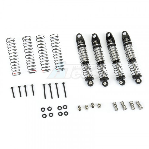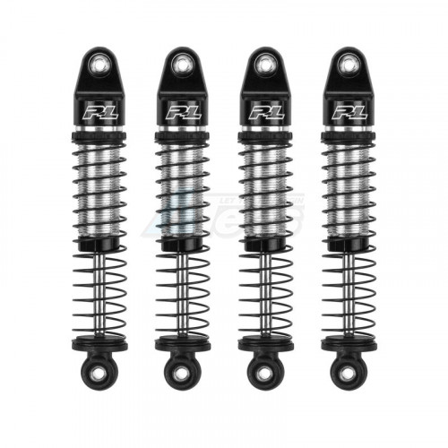 Two sets of springs are included in the Big Bore Scaler Shock set. The shocks come pre-assembled with a standard spring rate perfect for those stock or close-to-stock rigs. The optional stiffer springs (marked with red paint) are ideal for rigs with heavier bodies or just to tune to your specific conditions. It includes all hardware needed to mount up to either your AX24™ or SCX24™. Don't miss out on the coolest looking and best performing mini shocks on the Planet, Get your own Pro-Line Big Bore Scaler Shocks today!