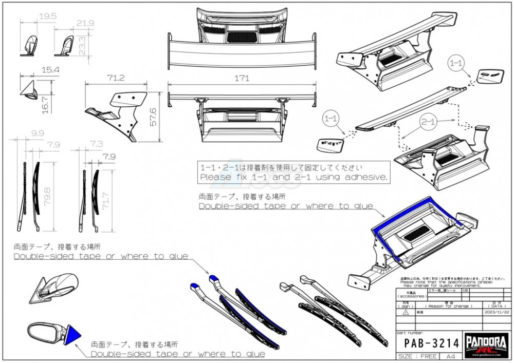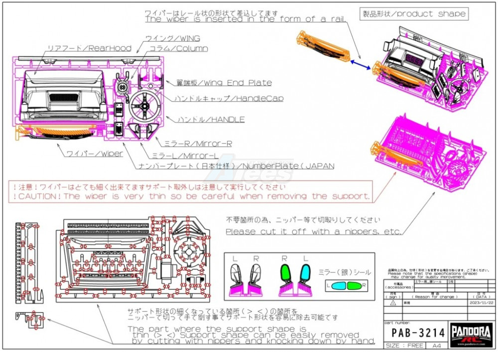 • Original resin wipers, door mirrors (mirror stickers included)