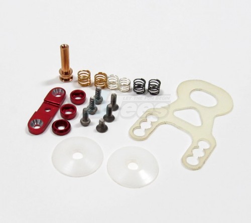 • With Aluminum Post, Aluminum Mount, 4.2mm Coil Spring (0.2mm, 0.4mm, 0.5mm)-3prs, Washers & Screws (representation Of Rear Damper Inserted)-1set (for Rm Body & Adjustable Design)