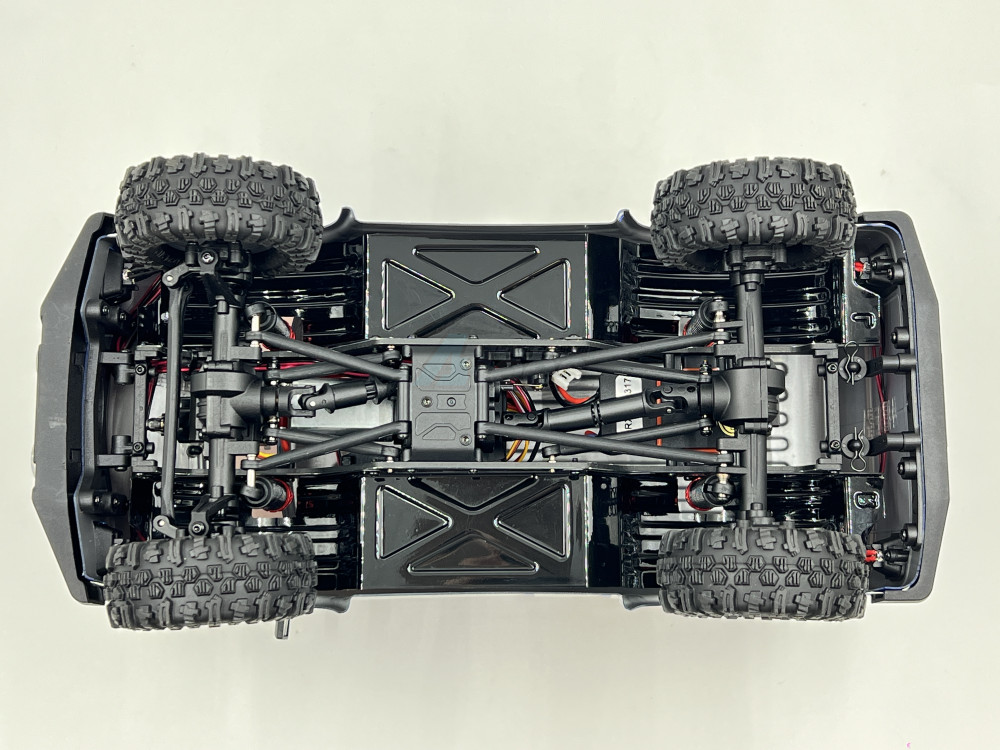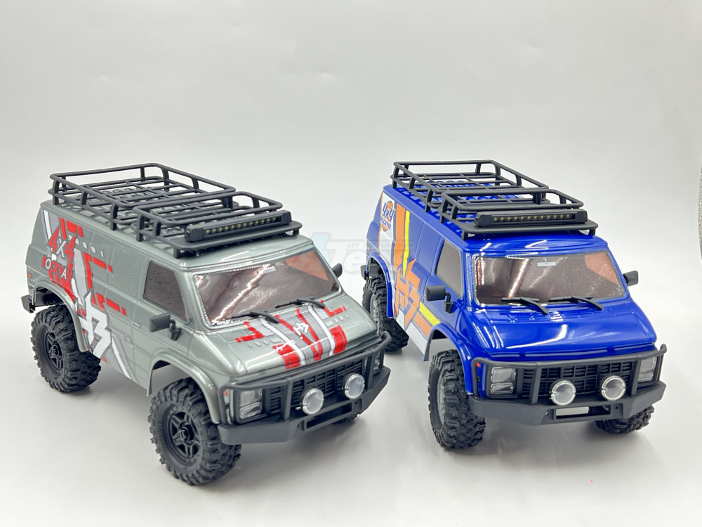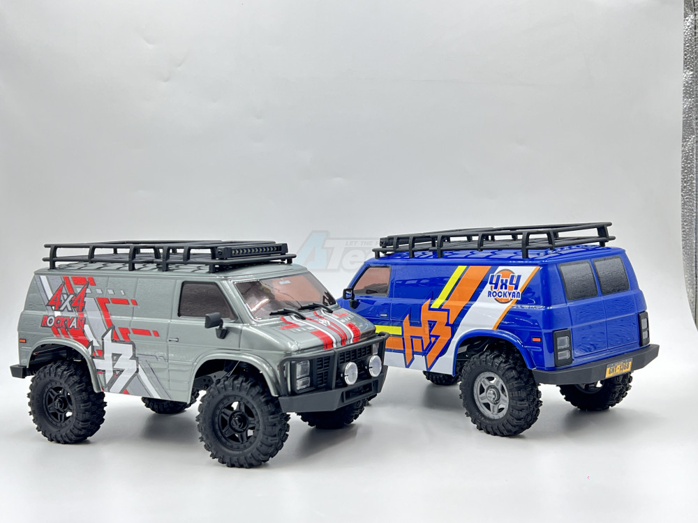 Returning in true encore fashion is the performance-driven portal axles, all metal gear drivetrain, LED’s throughout, 5-degree kick-up anodized aluminum chassis, FlySky 4-channel radio system with integrated brushed ESC/Receiver, painted finish with clear windows and eye-catching graphics on the RockVan and a world-wide support network for parts and troubleshooting.