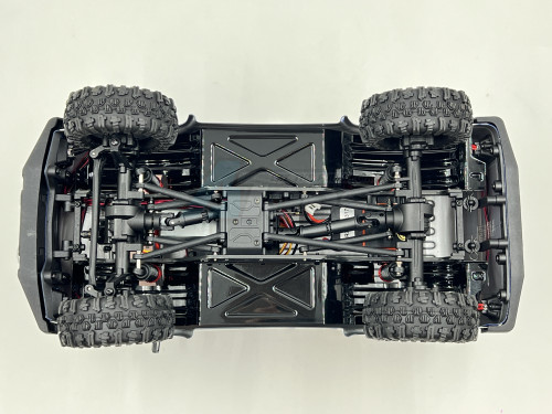 New features include our 1.5mm pin stub axles, hinged body mounts with hidden body clips for the Convoy (standard on the V1 RockVan), big-bore/threaded and oil-filled shock bodies, complete new body designs including large wheel-well openings for additional tire clearance and more aggressive look, new scale accessories for the RockVan including a full length roof rack, HD driveshafts, servo on axle (SOA), high-visibility light bar on the RockVan and super soft rubber Mudder tires complete with Deep Star beadlock wheels.