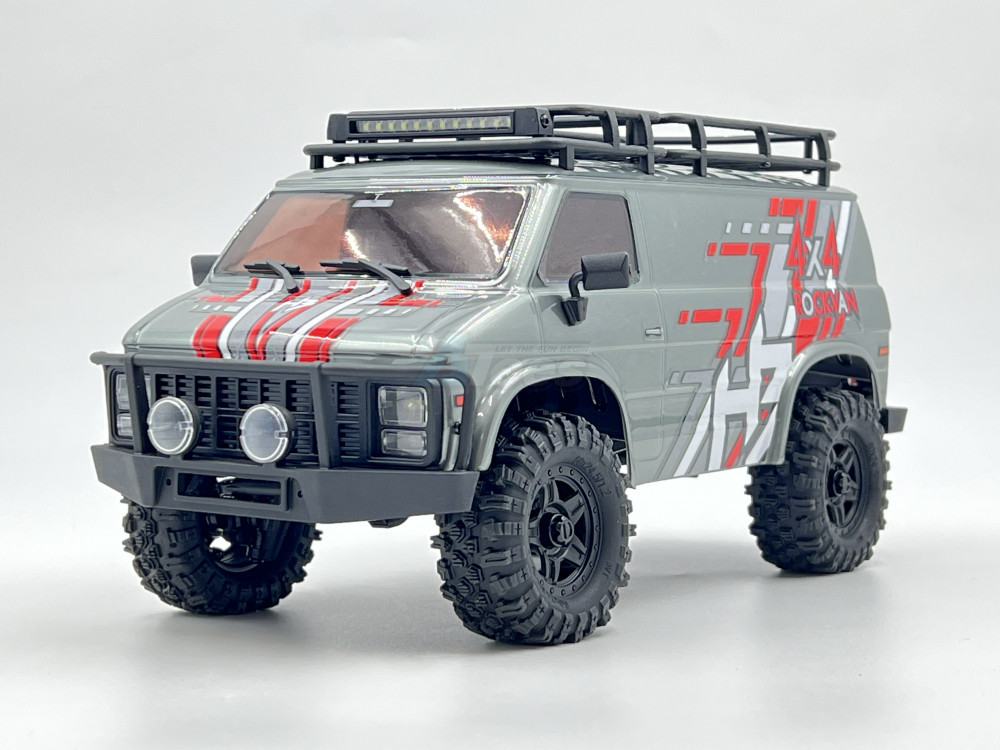 Returning in true encore fashion is the performance-driven portal axles, all metal gear drivetrain, LED’s throughout, 5-degree kick-up anodized aluminum chassis, FlySky 4-channel radio system with integrated brushed ESC/Receiver, painted finish with clear windows and eye-catching graphics on the RockVan and a world-wide support network for parts and troubleshooting.