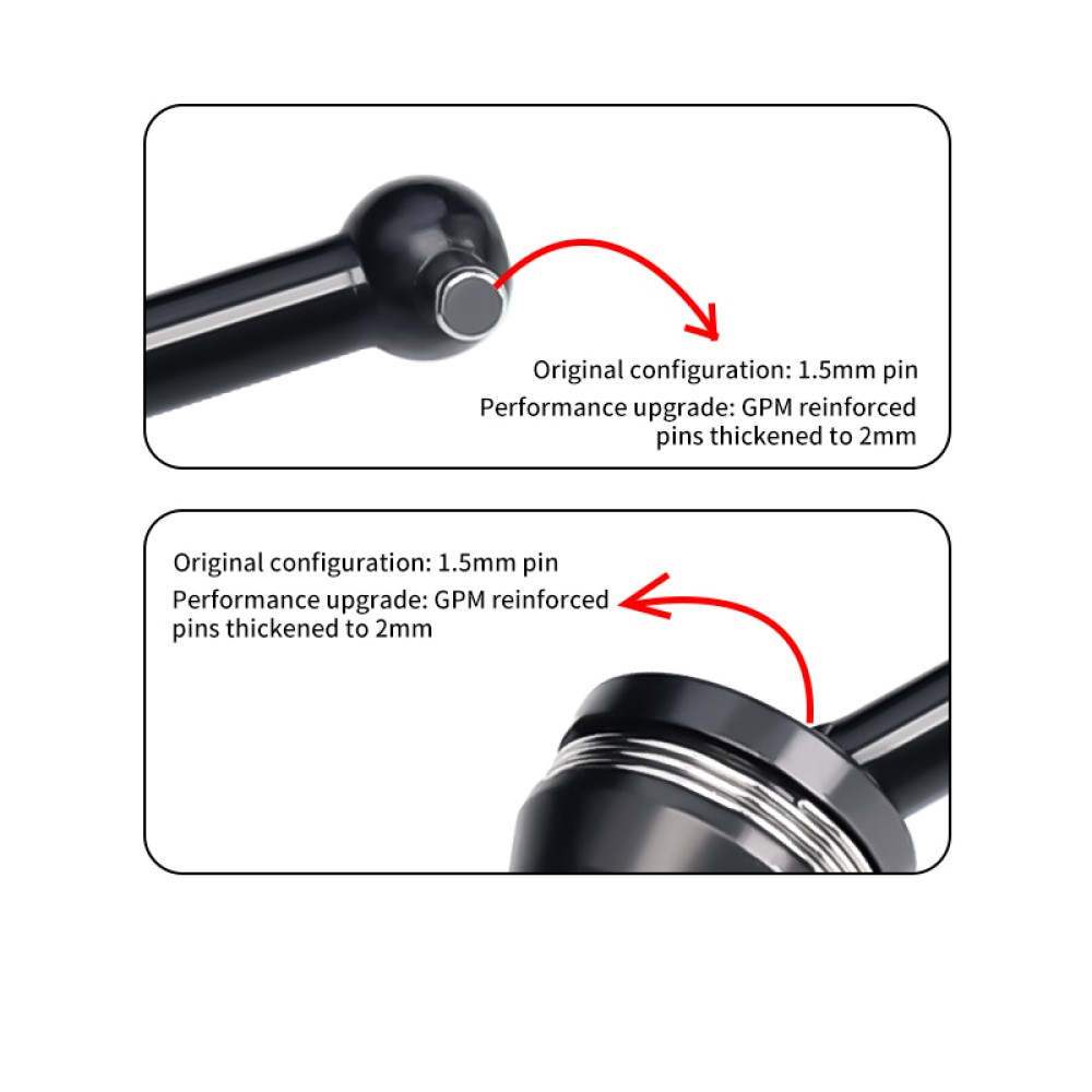 • Factory description: GPM Racing Arrma 1/18 Granite Grom 4140 Carbon Steel Front & Rear CVD Drive Shafts With Alloy 7075 Wheel Hex (Pins Thickened 2mm) for Arrma 1/18 Granite Grom / 1/14 Typhon Grom