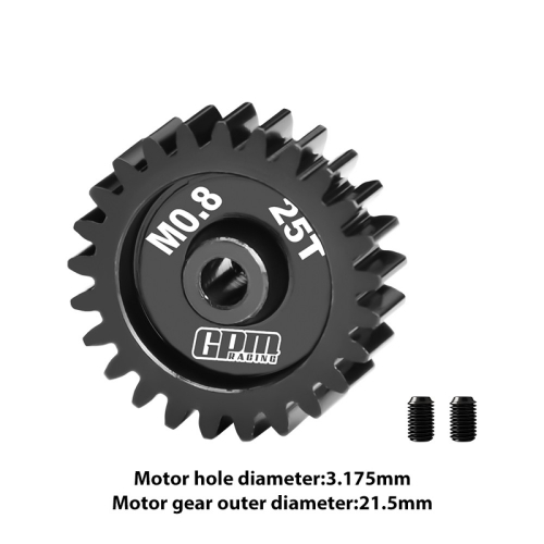 Factory description: GPM Racing 40CR Steel Motor Gear 25T (32 Pitch,Module: 0.8mm,Motor Tooth Diameter: 3.175mm)