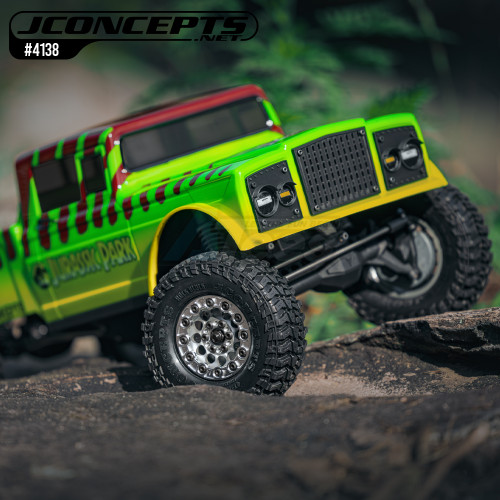 The Rock Block tire includes “open cell” foam inserts to support the ride and packaged and sealed with authentic JConcepts packaging with holographic badge for identification. The JConcepts sticky green compound is a favorite among the RC industry giving just the correct amount of flex and dampen release to support weight and hold traction in difficult situations. The tire is designed for popular 1.9” bead mounting diameter plastic, aluminum, and steel wheels on the market.
