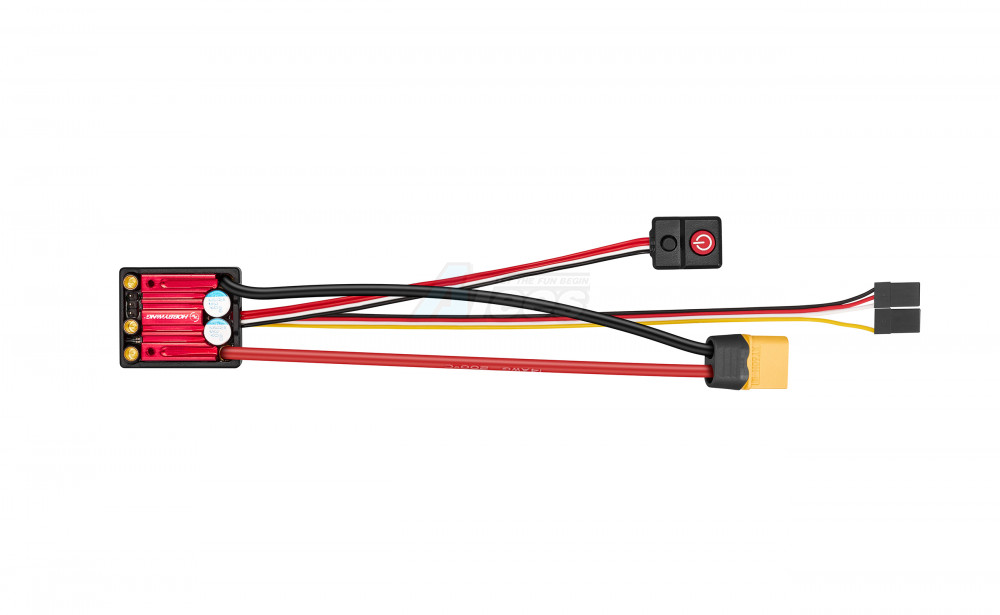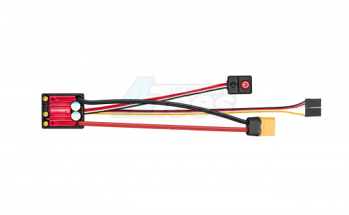 The ESC comes equipped with integrated 3.5mm female connectors on the output side, enabling seamless connection to HOBBYWING motors or other motors with compatible plugs.