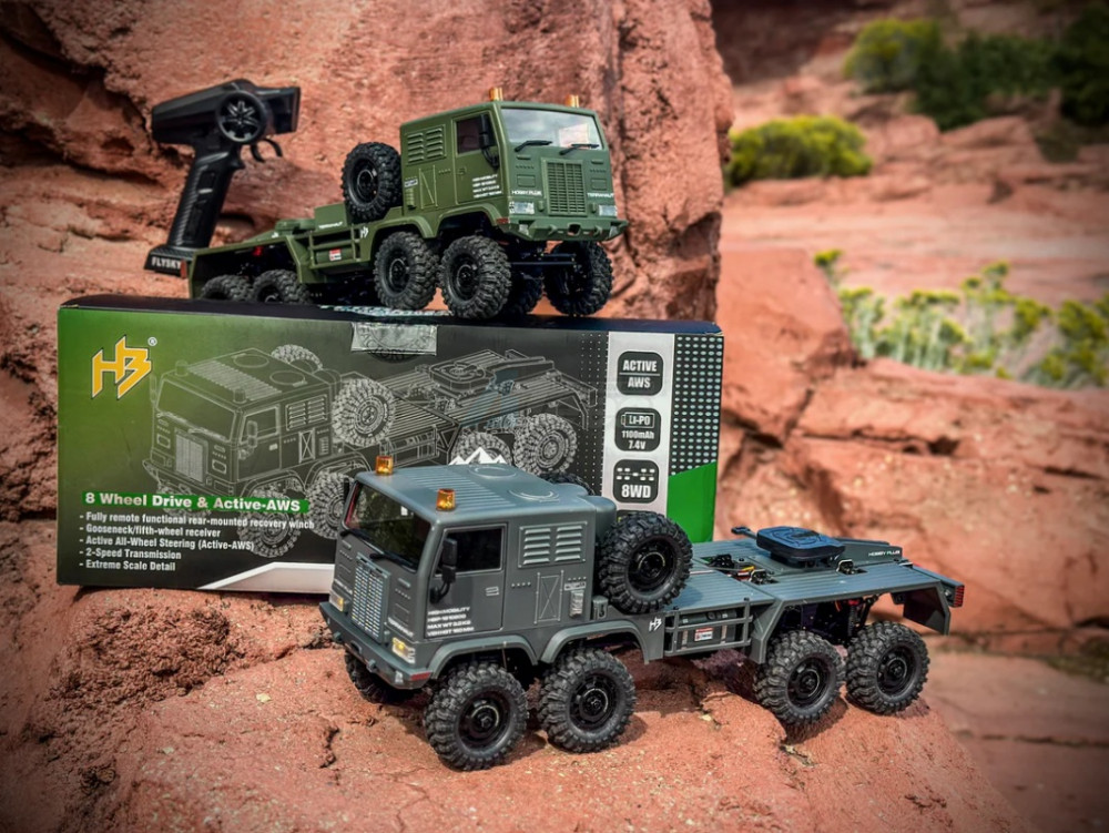 - The Terranaut 8X8’s revolutionary Active All Wheel Steering (Active-AWS) system allows the four front wheels and 4 rear wheels to be controlled independently via a 6-channel FlySky transmitter. With a standard steering wheel and a thumb-operated pivoting lever, users can command tight U-turns, crab walk maneuvers, or isolate front or rear steering at will while completely proportional.