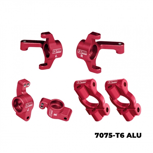 7075 Aluminum Front Caster Blocks & Front Spindles & Rear Hubs for Losi 1/24 Micro-B / 1/28 Micro-T 2S Red by GPM Racing