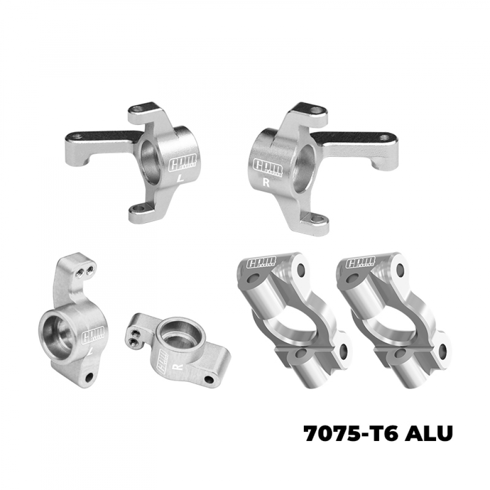 GPM Racing 7075 Aluminum Front Caster Blocks & Front Spindles & Rear Hubs for Losi 1/24 Micro-B / 1/28 Micro-T 2S Silver for Team Losi 1/24 Micro-B 2WD
