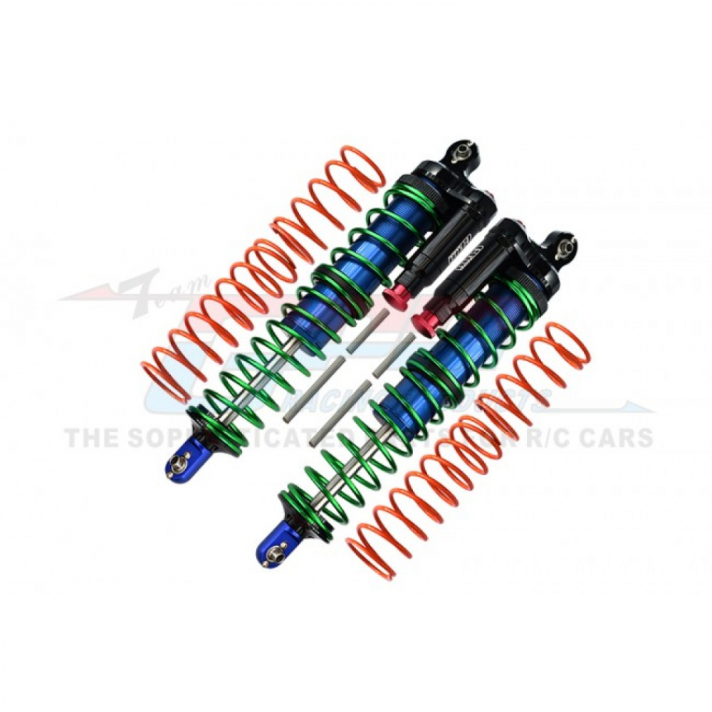 Factory description: GPM Racing Traxxas XMAXX Aluminium 6061-T6 Front/Rear L-Shape Piggy Back (Built-In Piston Spring) Adjustable Spring Dampers