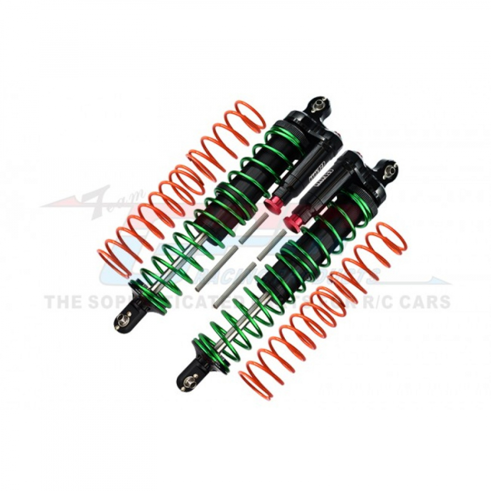 Factory description: GPM Racing Traxxas XMAXX Aluminium 6061-T6 Front/Rear L-Shape Piggy Back (Built-In Piston Spring) Adjustable Spring Dampers