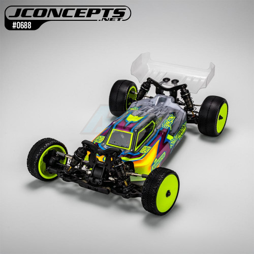 The back of the body has a climbing spoiler shape that uses the rear of the body to increase rear downforce. As always, the body arrives with window mask, decal sheet, two of the latest Carpet | Turf | Dirt wings for a quick transition from preparation to racing. The product is always backed by JConcepts customer service, supported, and developed by professionals with style and authenticity. Look for reputable dealers and distributors and demand authentic products – choose JConcepts.