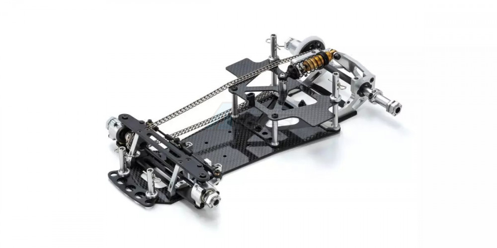 High-rigidity carbon main chassis and upper plate are paired with an FRP rear A-bar with optimal flex for enhanced tire grip.