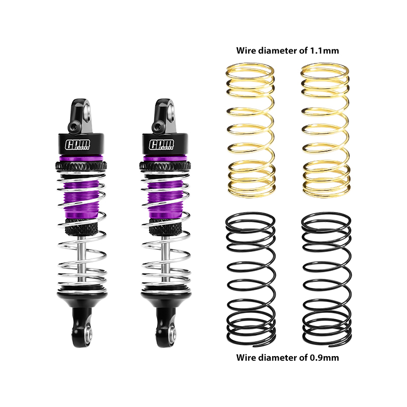 The silver spring installed on the shock absorber has a wire diameter of 1.0mm. GPM also ships two additional springs, a black spring with a wire diameter of 0.9mm and a gold spring with a wire diameter of 1.1mm, which can be replaced according to your own needs