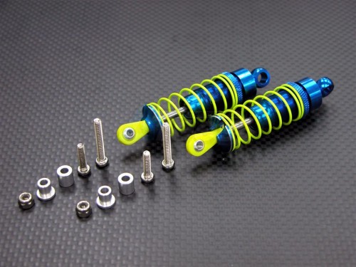 Aluminum Front Adjustable Spring Damper With Aluminum Ball Top (63MM) Including Screws & Aluminum Collars & 3MM Lock Nuts - 1Pair Set Blue