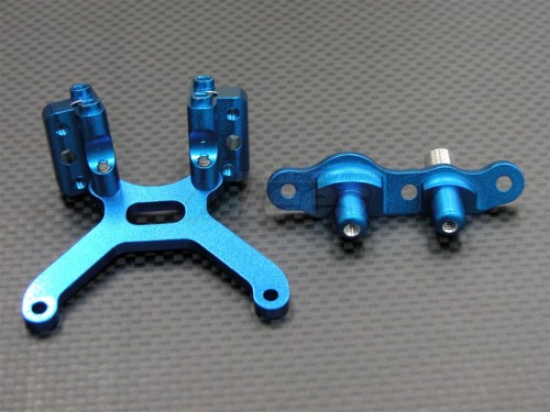 Aluminum Mount Connector For Front Shock Tower + Aluminum Plate Steering Cap Blue