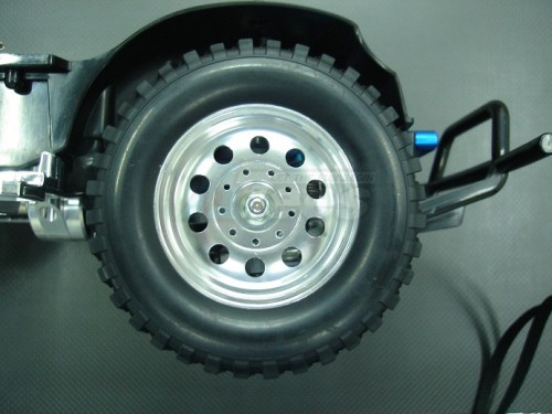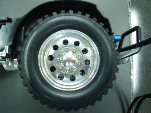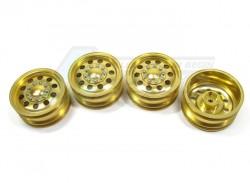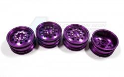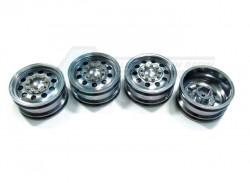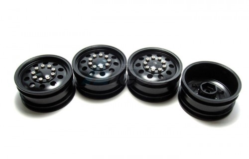 - 4 pcs of T-6 6061 1/10 scale wheels. 26mm width. Fits standard 12mm hex. 9 bolts secure the outer plate to prevent dirt.