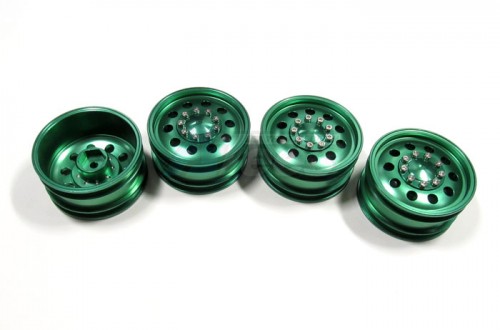 - 4 pcs of T-6 6061 1/10 scale wheels. 26mm width. Fits standard 12mm hex. 9 bolts secure the outer plate to prevent dirt.