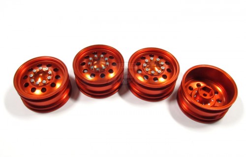 • 4 pcs of T-6 6061 1/10 scale wheels. 26mm width. Fits standard 12mm hex. 9 bolts secure the outer plate to prevent dirt.