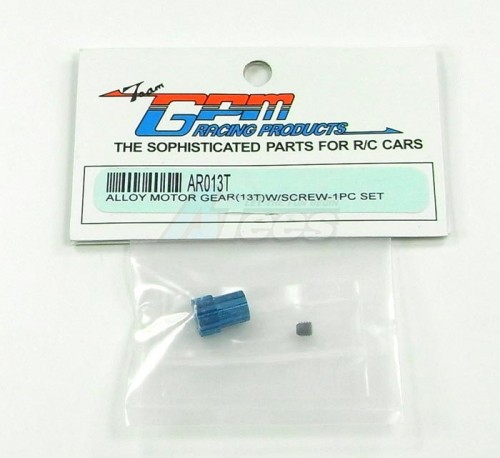 GPM Racing Aluminum Motor Gear (13t) With Screw - 1 Piece Set Blue for Team Associated RC18B