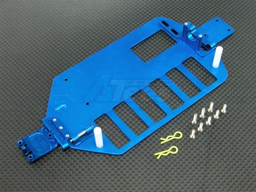 Aluminum Main Chassis With Aluminum Mounts & Screws & E-clips & Delrin Posts - 1 Piece Set Economy Version Blue