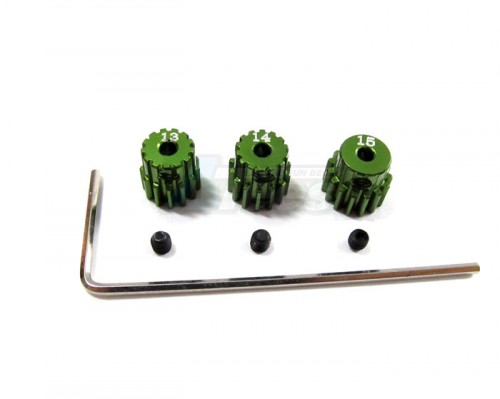 Aluminum Motor Gear (13, 14, 15t) With Hex Wrench - 1set Green