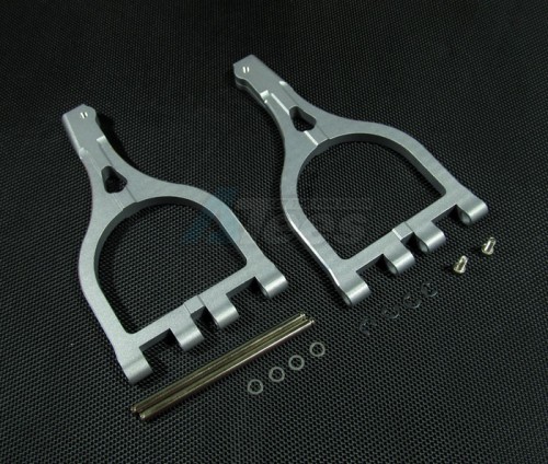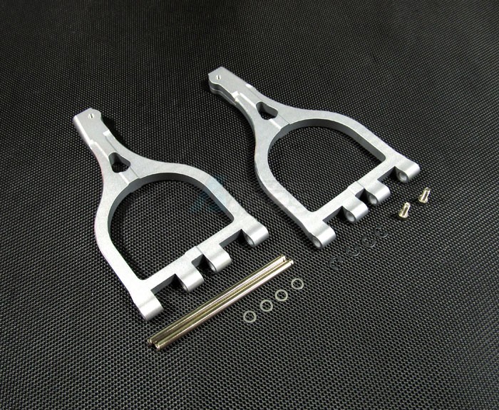 Aluminum Front / Rear Upper Arm With Collars + Pins + Shims + Screws + E-Clips 1 Pair Set Gun Metal