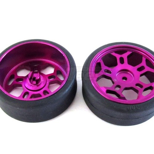 GPM Racing Aluminum Front Rims With Original Tires And Insert 1pr Purple for HPI Micro RS4 / Drift