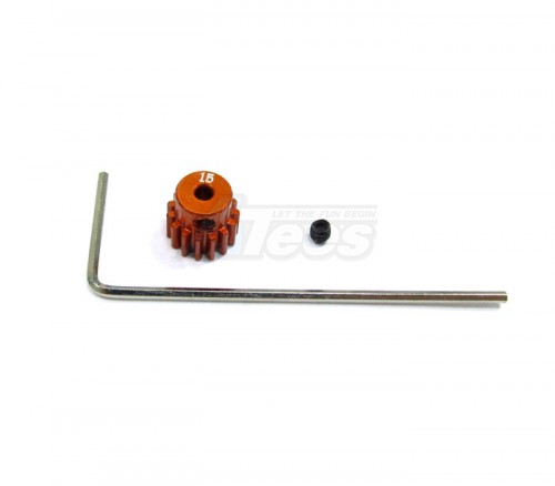 Aluminum Motor Gear 15t With Hex Wrench & Screws- 1pc Set Orange