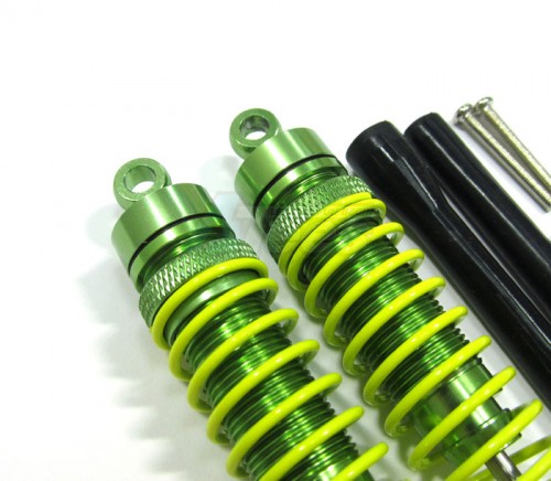 Aluminum Rear Damper (115mm) With Screws & 3mm Lock Nuts & Aluminum Collars & Plastic Black Dust-proof - 1pr Set Green