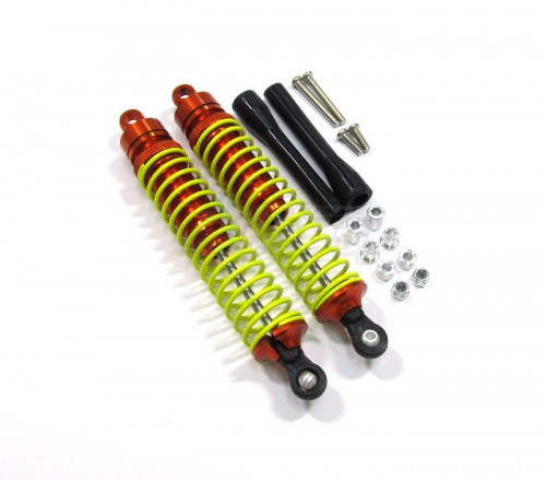 Aluminum Rear Damper (115mm) With Screws & 3mm Lock Nuts & Aluminum Collars & Plastic Black Dust-proof - 1pr Set Orange