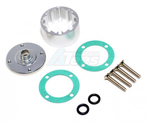 Aluminum Front Or Rear Differential Casing With O-rings & Screws & Shims - 2 Pieces Set Silver