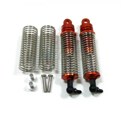 Aluminum Rear Adjustable Spring Dampers (57mm) With 1.0mm Springs & 0.9mm Spare Springs & Aluminum Collars & Screws - 1pr Set Orange