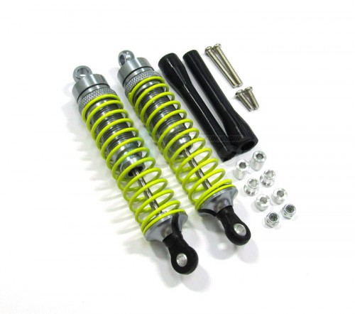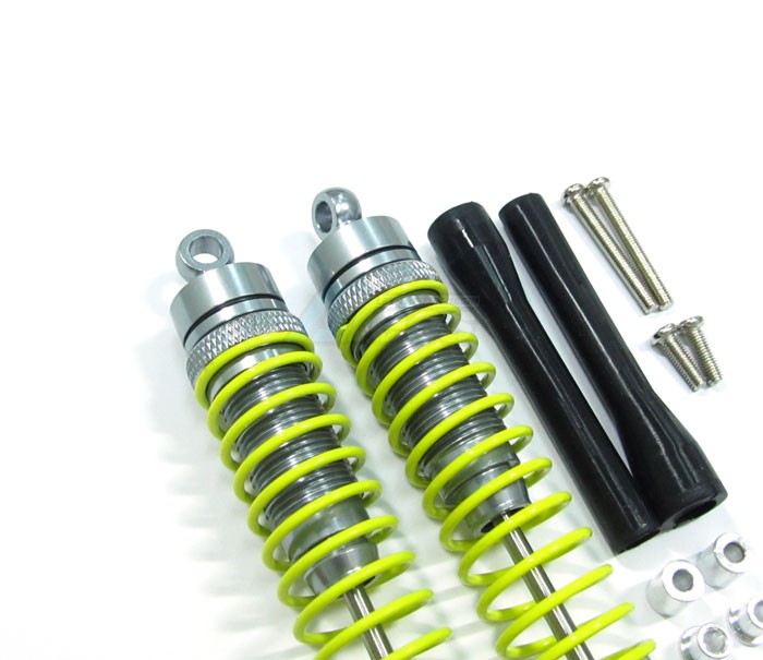 Aluminum Front Damper (100mm) With Screws & 3mm Lock Nuts & Aluminum Collars & Plastic Black Dust-proof - 1pr Set Gun Metal