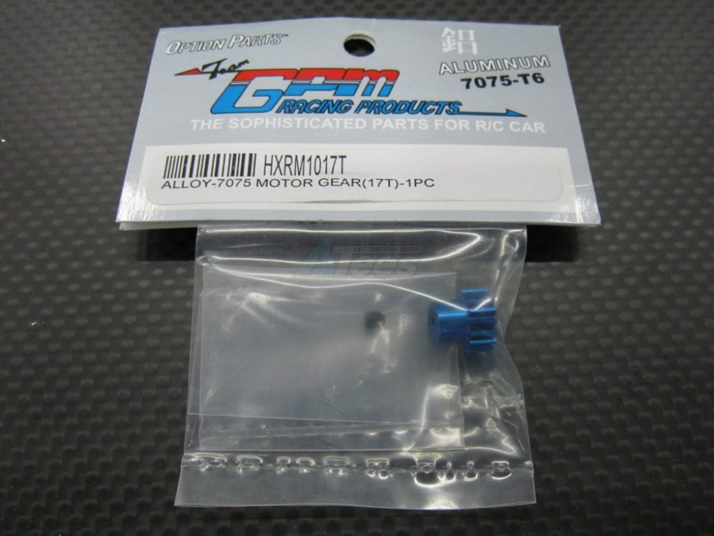 - Factory description: GPM Racing Xray M18 ALLOY-7075 MOTOR GEAR (17T) WITH SCREW