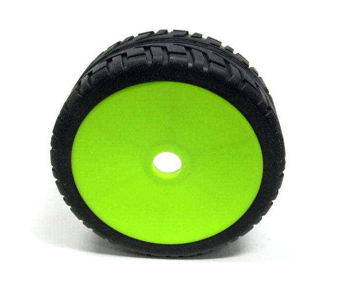 1/8 Buggy Dish Wheel & Tire Set On Road (2) With Molded Inserts Green by Boom Racing