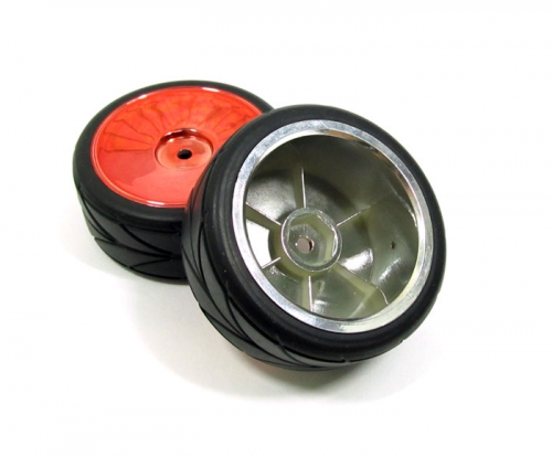 Outer Ring Dish Wheel & Arrow Pattern Tire Set For 1/10 Red by Boom Racing