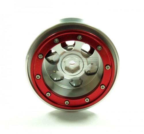Aluminum Beadlock Weighted Wheels With Weight Holder & Bearings Suitable For All 2.2 Tires - 1 Pair Set Red