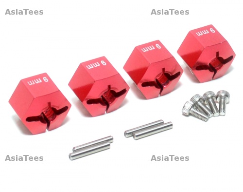 Aluminum Hex Adapter 14mm Diameter With 9mm Thickness-4pcs Set Red