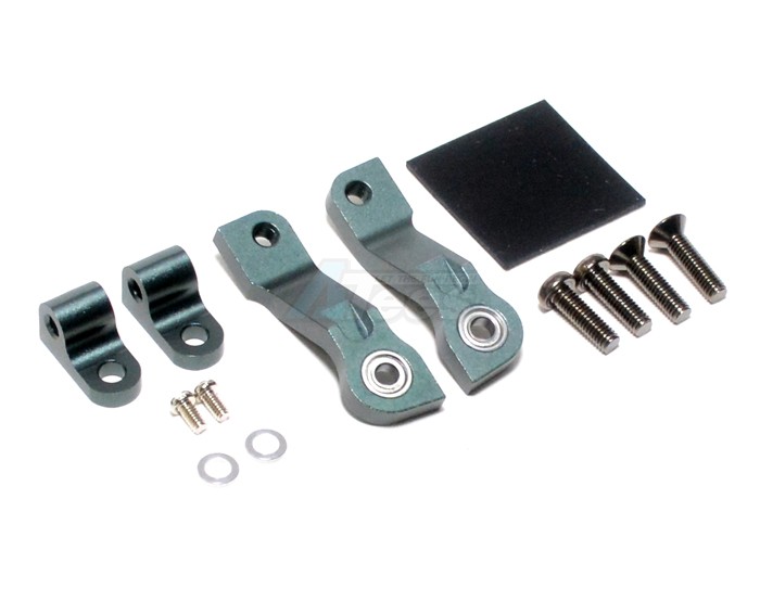 - Used for the rear suspension of the CC-01 chassis. Extends the stroke on the extension side to improve cross-country performance. The upper pivot of the damper has been changed to aluminum parts, and an aluminum down pivot link has been added. Since the link is fixed to the contraction side and freely lowers to the extension side, the suspension stroke is extended and the ability to follow rough roads is improved. In addition, the gunmetal-colored aluminum link also has a dress-up effect.